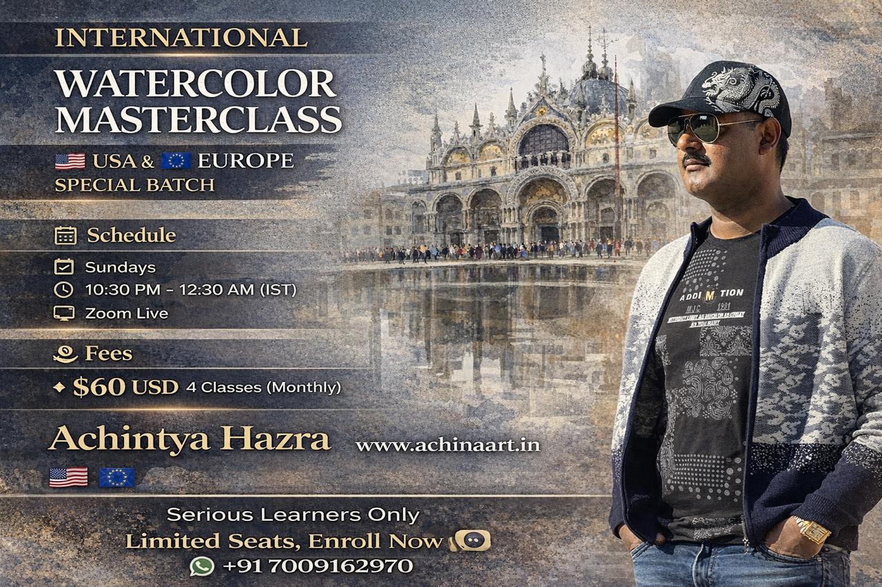 This batch will focus on structured learning, strong fundamentals, composition, light, atmosphere, and my personal watercolor techniques developed through years of practice and international exposure.